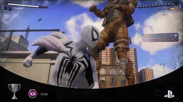 You do have a choice to complete the Surge Trophy soon after unlocking the Symbiote suit, abilities, and skills, or do it at the end of the game. The latter will be the smarter option because the possibility of your Spidey being 100% upgraded is very high.