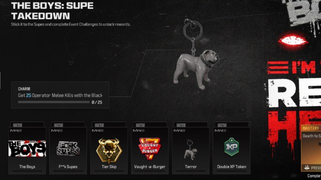 After you complete the challenge, you will get Billy Buther’s bulldog, Terror’s weapon charm. You will also be one step closer to the Death to Supes Weapon Camo that you will get for completing all of The Boys: Supe Takedown challenges.