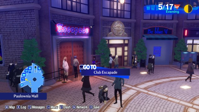 If you’re hoping to get to Club Escapade, you’ll want to head to Paulownia Mall during the evening since this is the only time that the Club is open and available. You’ll also want to ensure that you’ve boosted your Courage, as you can only enter after you’ve reached Confidence Level 2 — known in the game as Ordinary. There are a variety of ways that you can boost your Confidence, including the following:
