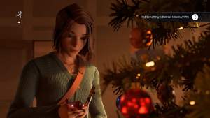 Right when you make the discovery, Detective Alderman will enter the office and start investigating the place. Switch back to the “Living” timeline and grab the Hawt Dawg Man ornament from the Christmas tree.