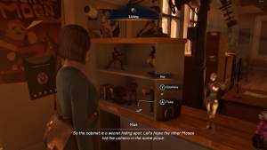 After that, you can walk right into Moses’ office through the front door. Once you’re in the office, initiate a conversation with Moses until you can ask him where he keeps “Contraband“, which is also where the clue for the camera is stored.