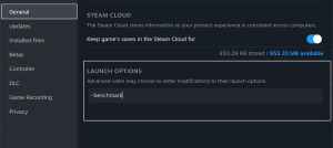 - In the General tab, enter the following command under LAUNCH OPTIONS.