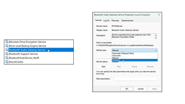 - Right-click on it and select Properties. Open the Services tab and uncheck Hands-free telephony from the list.