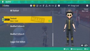 - Outfit: Tracksuit (Black / Gold) – gifted by Drayton after battling him in the League Club Room.