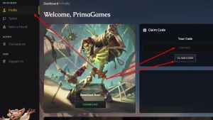 - Click on the Code here field on the right side (in the Claim Code window).