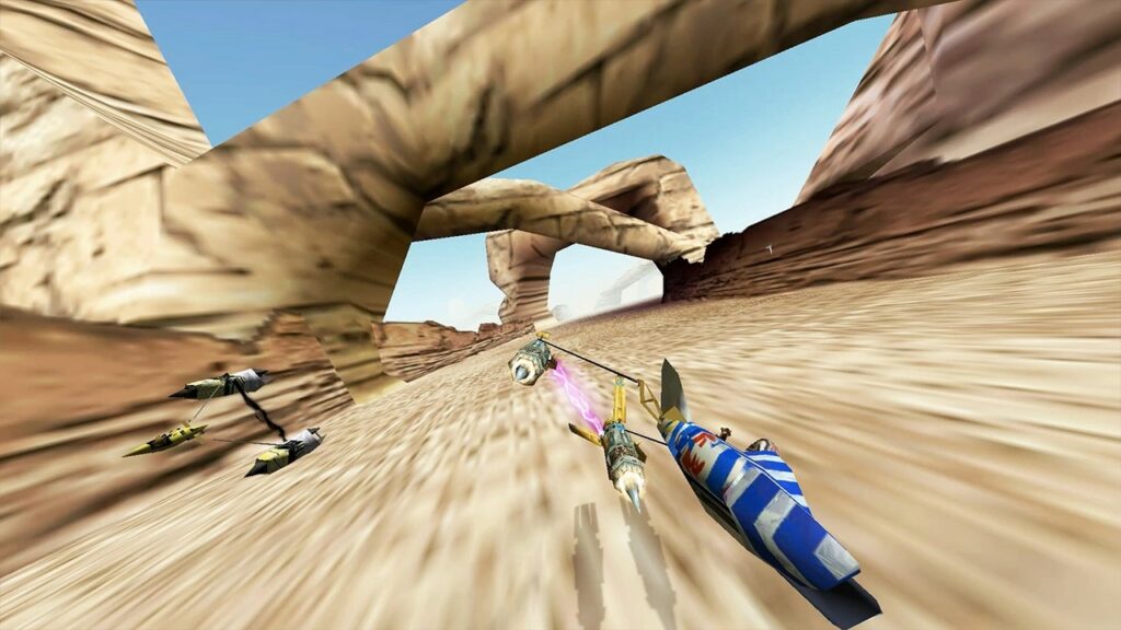 This was probably a bad game, but I loved it when I was a kid and Limited Run Games did stuff with it, so that’s good for something. The Star Wars parts of this game are barely relevant, but the “trying to race well but everything kills you” parts were sick as hell. Your CGI Hot Wheels Wacky Racer takes damage based on where you hit it (or someone else hits you), and you can have classic movie experiences such as “angrily hold down the magic switch and maybe it fixes your vehicle.” Love that stuff. And the speed numbers are super high, and sometimes when you die you can watch the piece of your ship that hasn’t exploded yet sail down an empty track like a missile.