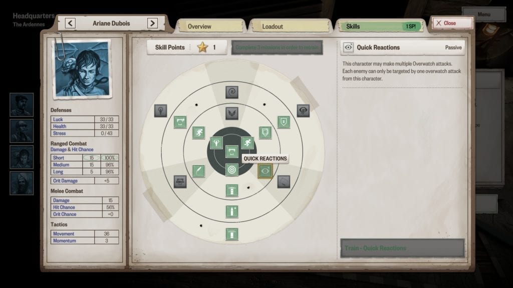 Other abilities are also fun to use. One is the Overpenetrate ability seen above, which targets all enemies in a straight line (perfect for narrow corridors). Your pistol specialist, Ariane Dubois (she’s a member of the French Resistance), can also continuously shoot anything in her line of sight when you put her on overwatch. There’s another character (Singh) who used shotguns by default, and I ended up changing him to a pistol specialist as well.