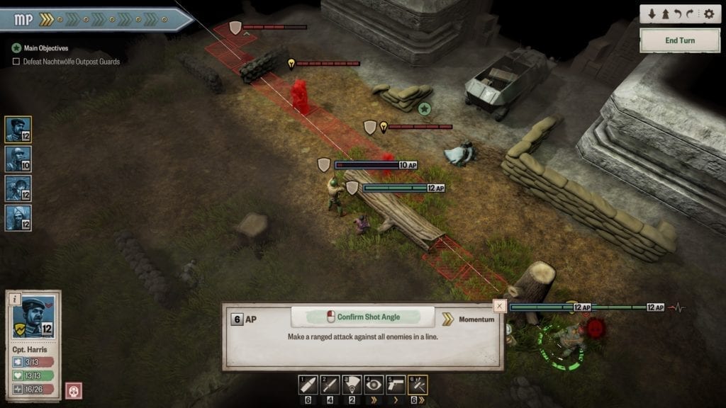 You’ve also got the Momentum feature, which gets filled up whenever you get kills or crits against enemies. Momentum is different from Action Points or AP (a staple of turn-based tactical games). Whereas AP is used for movement and shooting and isn’t replenished until a turn ends (or via a specific ability), Momentum can be continuously gained based on your performance in battles.