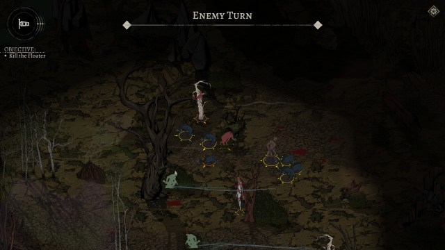Alder’s Blood really stands out with its stylized, brooding art. The game is fully 2D and character illustrations, map node backgrounds, and even mission maps really stand out. The Hunters and the monsters themselves… don’t. Enemies look okay but not great, and more variety and a more unifying theme would have been ideal.