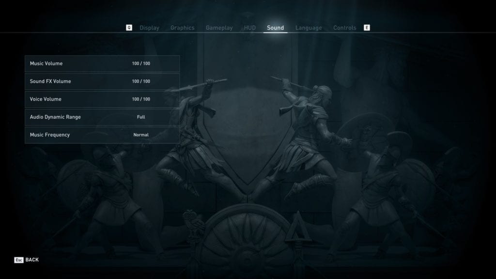 I have no qualms with the audio at all. The musical score and sound effects are top-notch. Important scenes are punctuated with a somber tone or a dynamic and soaring accompaniment that gets the blood pumping for combat — Spartan style! You can also choose to set the music frequency to determine how often it fires during the game.