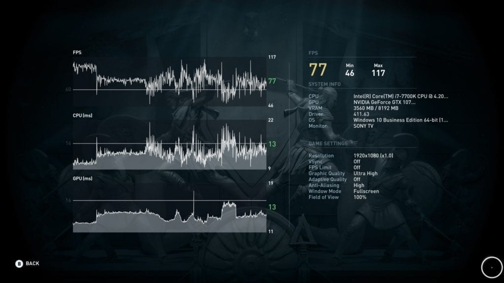 Additionally, you can just play the game. The options screen will show the game’s performance based on your settings as you play through it. That’s a nice touch.