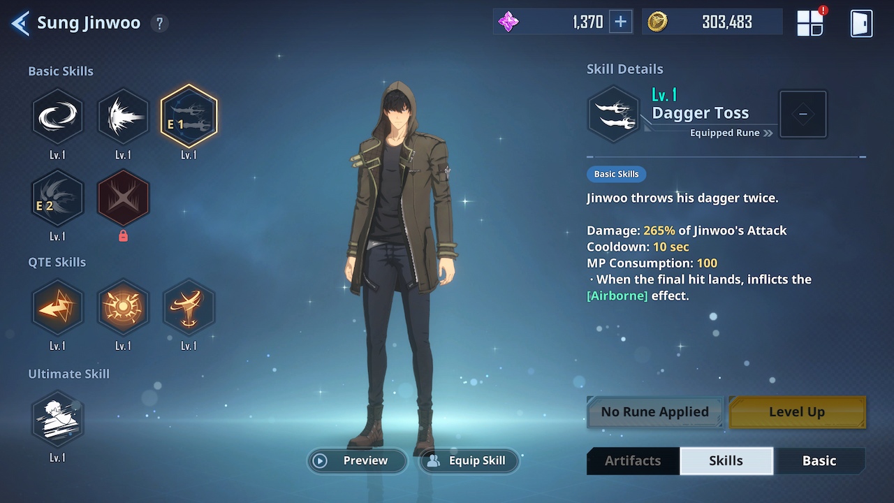 Depending on Jinwoo’s Job, he’ll have new Skills to play with. If you’re looking for the best Skills to deal the most amount of damage to enemies, you should go for Dagger Toss or Double Slash.