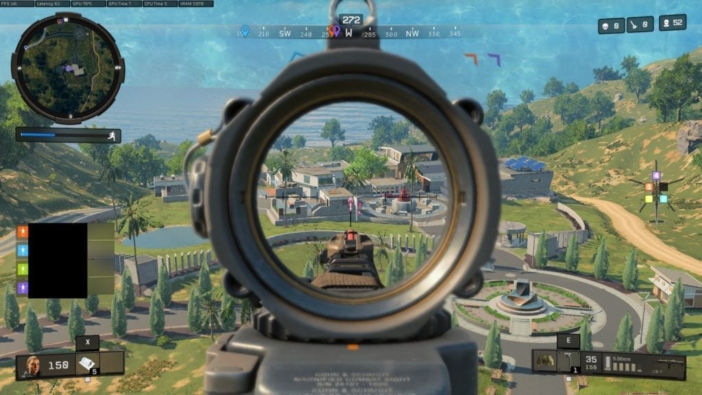 Blackout ran at 144 to 180 FPS for me. There were, however, a few inconsistencies. For instance, if you’re on a chopper or buggy, chances are that it would drop down to 120 FPS before climbing back up again. Viewing or traversing large portions of the map will tend to do this, which is why you’ll notice it when you fly out your Wingsuit once a game starts.