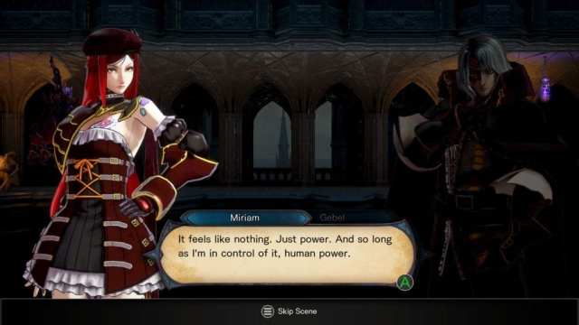 The game’s story is fully voice-acted and fairly well to boot. While it’s nothing earth-shattering, the narrative does a good job of giving context and motivation for you to keep playing. There are occasional full 3D cutscenes that play briefly, but most of the story is told through dialogue boxes and 3D character portraits. Miriam will also find bookshelves all over the castle that contain journal entries that give some additional backstory. Overall, the story is better than I was expecting, even if the characterization is often underwhelming.