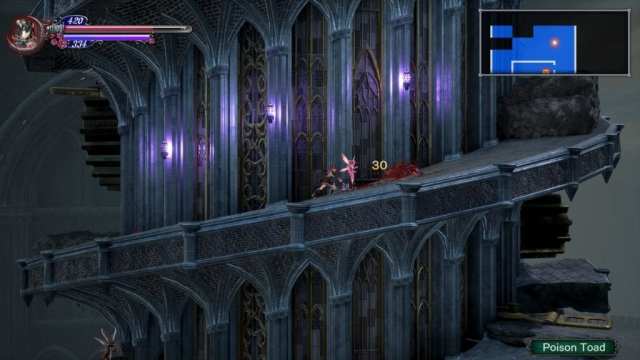 The game’s structure and gameplay will be instantly familiar to Castlevania fans. Bloodstained: Ritual of the Night takes place on a large, interconnected map loaded with secrets and temporary dead ends. Miriam’s progress is frequently halted and she must return when she has a new ability. Other times she’ll unlock shortcuts by flipping a lever. Fans will be glad to know that it’s exactly the same as it was in Igarashi’s previous games.