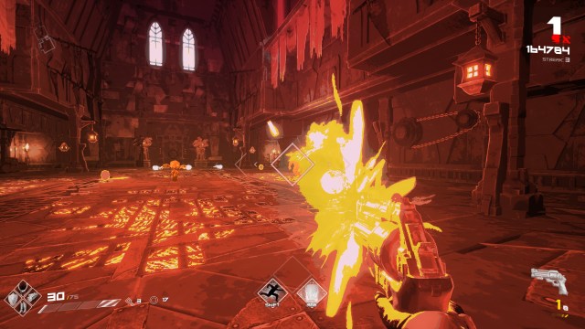 Equally prominent are the enthusiastic roaring of electric guitars on the game’s hard rock soundtrack. Each stage has its own track, with separate tracks for certain rooms as well, that help dictate its personality. It’s like playing through your own ever-evolving rock musical, but replace all the words with explosions and gunfire. Every track keeps a steady BPM, for your rhythm gaming pleasure, and leaves room for you to add your “percussion.” They’re both memorable and attention-grabbing, but not so much as to distract. BPM: Bullets Per Minute walks a fine line with its music, but finds unequivocal success.