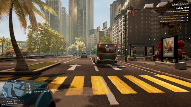 Another tech flex is that the entire map is now one seamless open-world. Once you load, you’ll rarely have to load again, aside from when fast traveling is needed. Having played the sim with an SSD, I can report that from startup to jumping in-game, it’s always only ever taken a few seconds. This certainly comes in handy when making full use of the revamped bus route system.