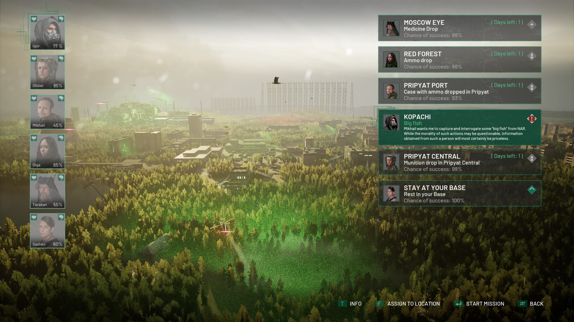 In a way, you can think of Chernobylite as akin to survival games like This War of Mine. As Igor, you’re likely to choose important missions that advance the plot. As for the supporting characters, you can assign them to the other locations to scavenge for food, ammo, and other supplies. Once the day ends, you’ll need to take stock, handing food to your comrades and giving them gear lest they become resentful about joining you.