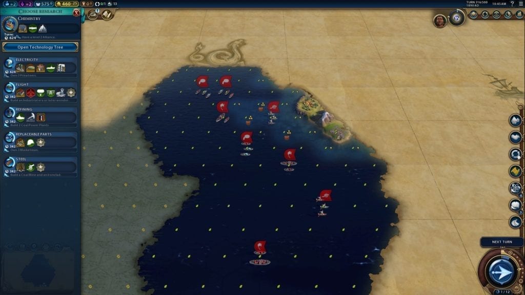 - Tech: Your early-game techs will depend on the resources surrounding you. Once you’re in the clear, beeline Flight to get 150 to 200+ Tourism based on your territory’s passable features.