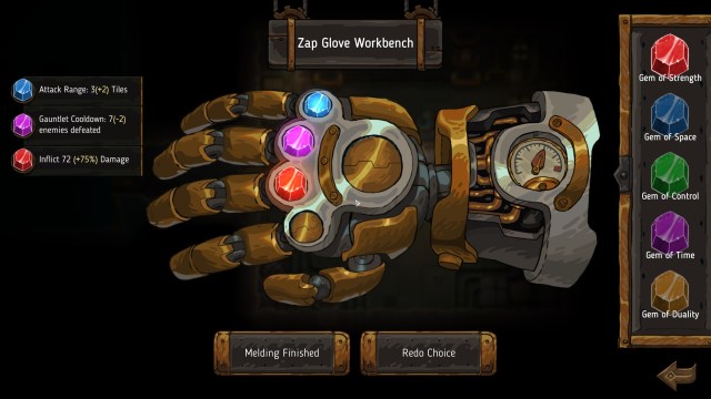 Speaking of randomization, some rooms might contain slot machines or challenge rooms. There’s even a nod to Thanos’ Infinity Gauntlet. You can continue powering this up as if you’re socketing Infinity Stones.