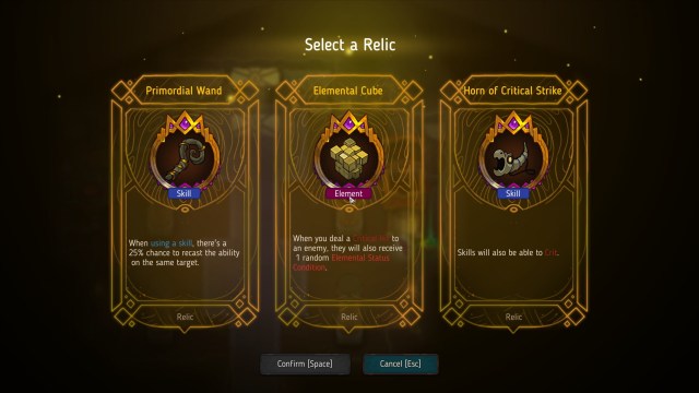 Crown Trick‘s items and relics complement your weapon of choice. Items are your basic consumables such as those that cast debuffs, direct damage, or protective barriers. Relics, meanwhile, can be considered temporary buffs akin to passives that last throughout a run.