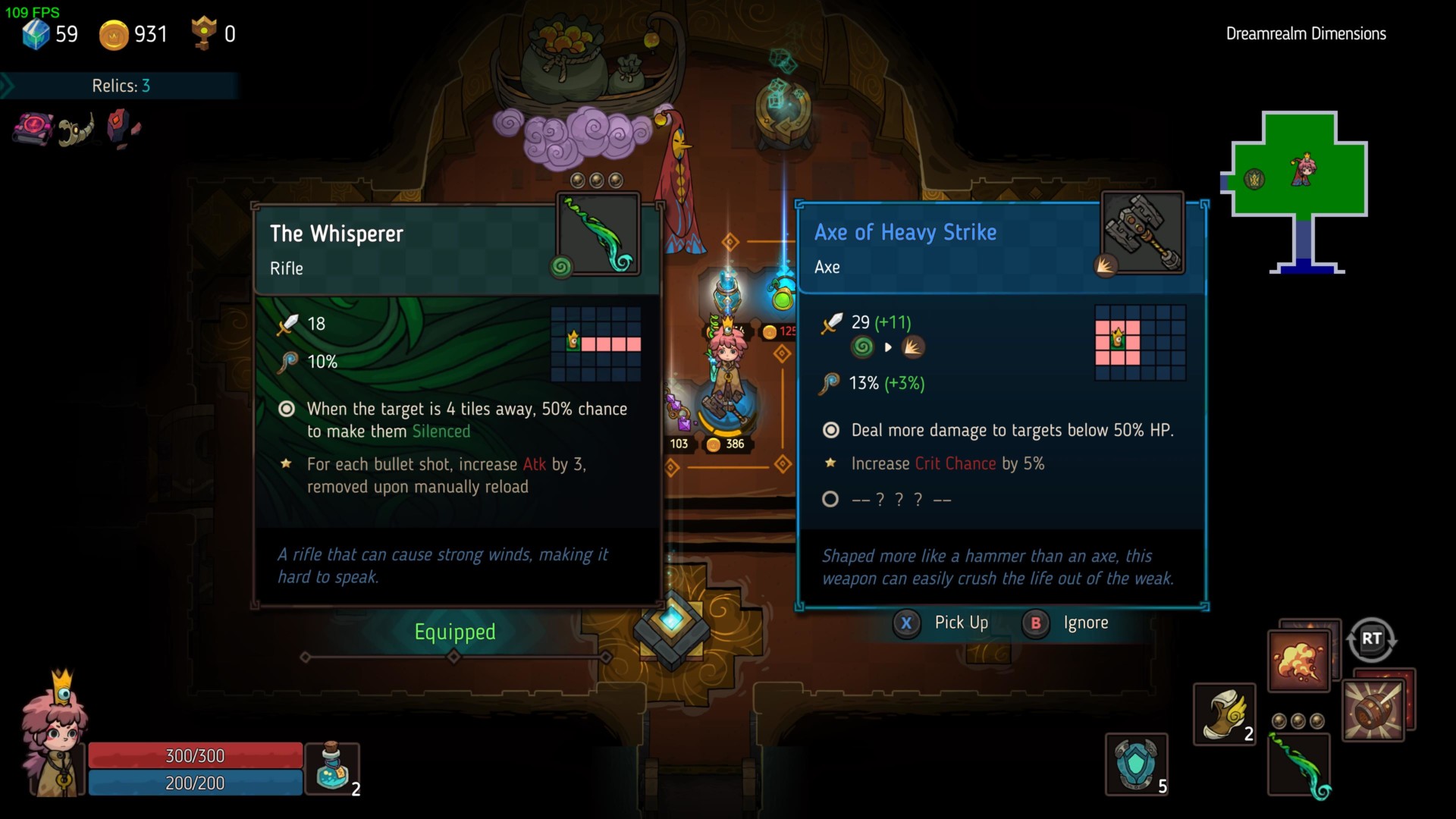 Along the way, you’re guided by a sentient crown companion. This kicks off the tutorial and the rest of your journey where every dungeon floor has multiple rooms. Many of these have you facing off against several mobs whereas others hold treasure chests, secrets, and unique dilemmas that offer a choice.
