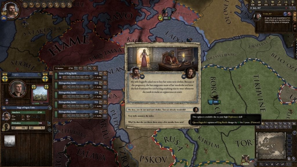 Ultimately (or “vult-imately” if you like puns), Holy Fury‘s changes to Crusader Kings II mechanics spice up the entire game. Tweaks to Crusades, Coronation, duels, and Pagan actions add more flavor. Additionally, Bloodlines and the Kill List make for new and fun ways to delve deep into checking out how families and characters have fared. Sadly, some of these changes feel like they belong to free QOL updates as opposed to actual expansions. The coronation and baptism events, for instance, feel tacked on.