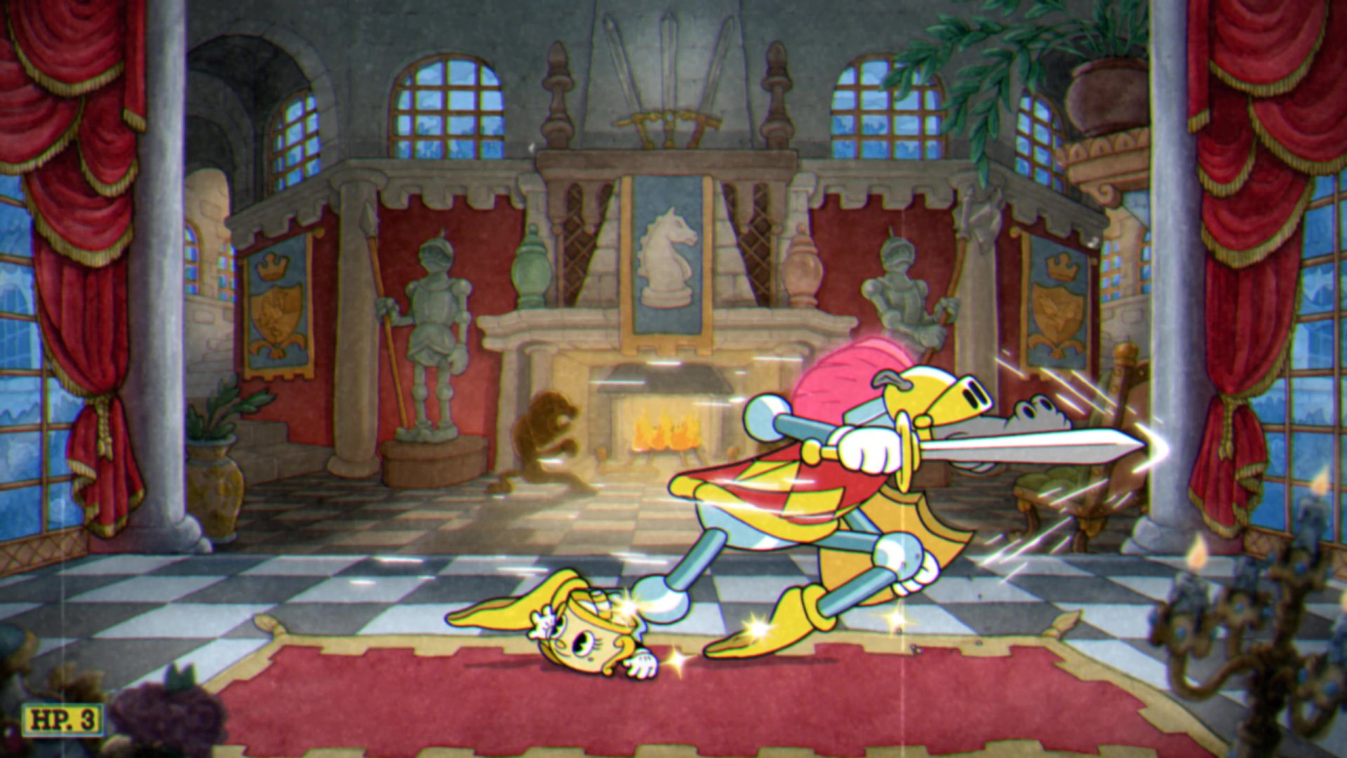 I mentioned before that the developer streamlined the experience in the DLC, and that’s because there aren’t any 2D platforming sections. I’ll admit, theses levels were my least favorite sections in the original Cuphead. And I know I’m not alone in that belief. They’ve been replaced with The King’s Leap, a floating castle in the sky with five challenging boss fights.