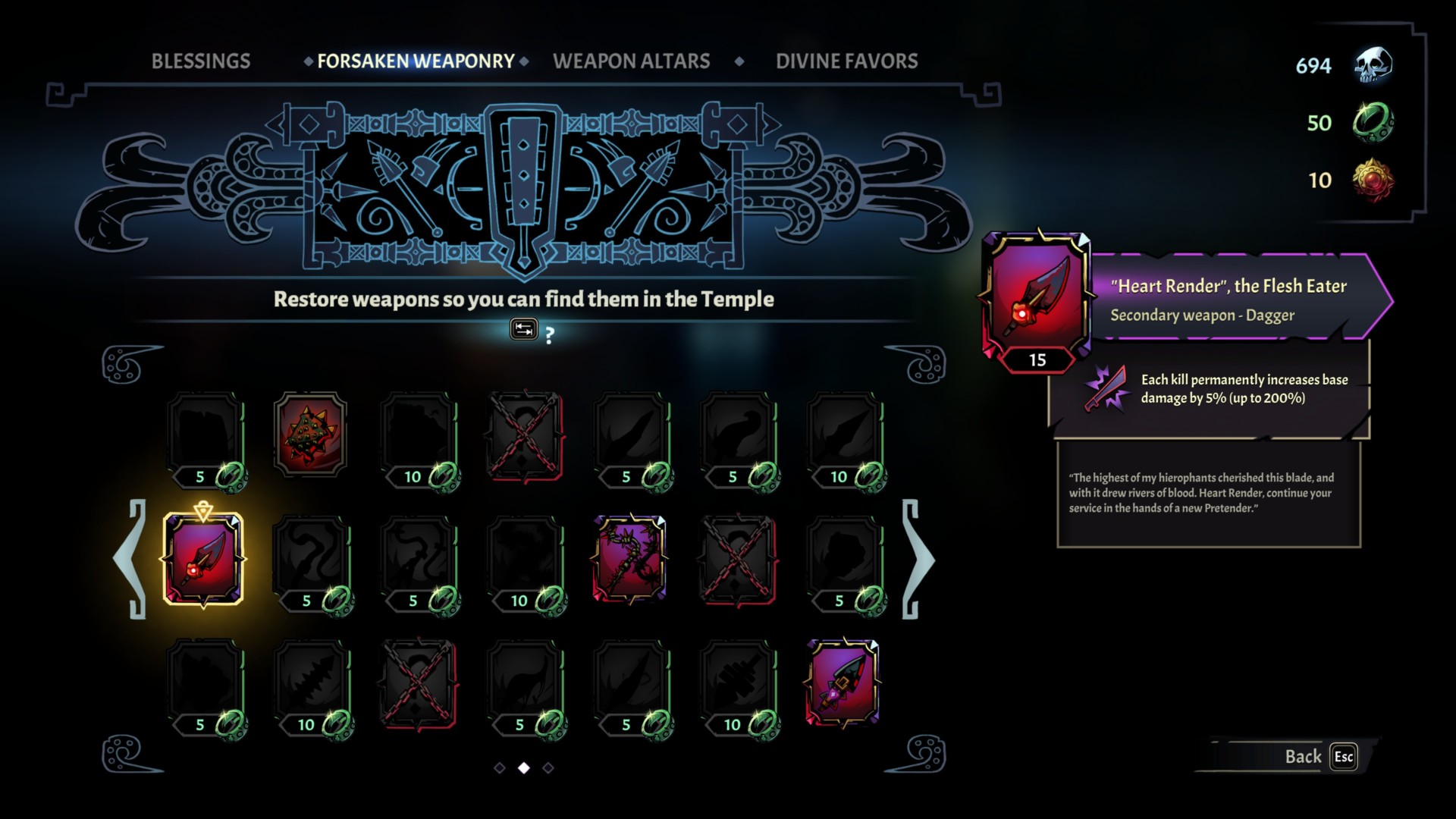Other than these, I never really found much use for the other types of armaments. In some ways, I felt held back if I wasn’t choosing something that could be stacked with an attribute, relic perk, or heal-on-kill/heal-on-critical effects. Furthermore, many cursed weapons just became too cumbersome to wield due to certain affixes they could end up with.