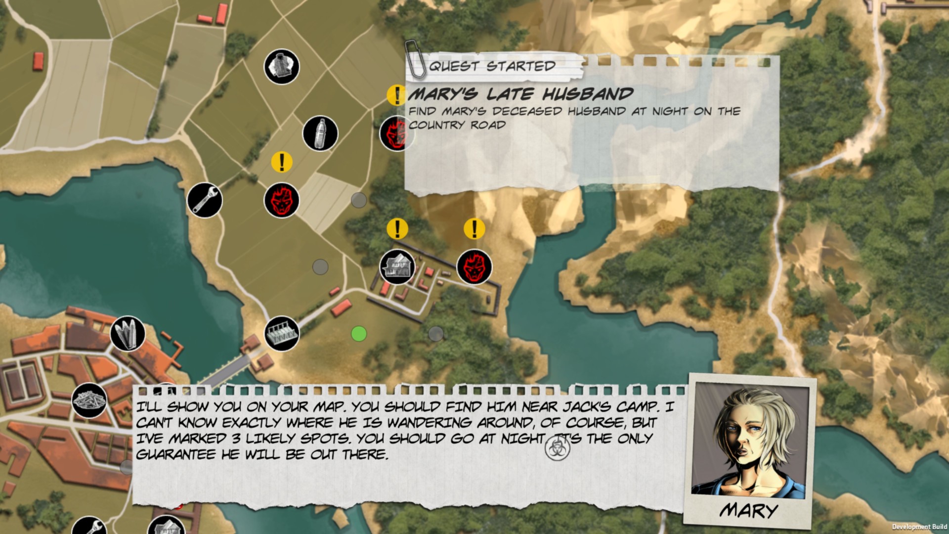 Of course, your primary means of survival will come from scrounging supplies. Dead Age 2‘s map shows various nodes that you can travel to, many of which have resources such as food, water, construction supplies, and the like. Naturally, many will also have a slew of enemies.