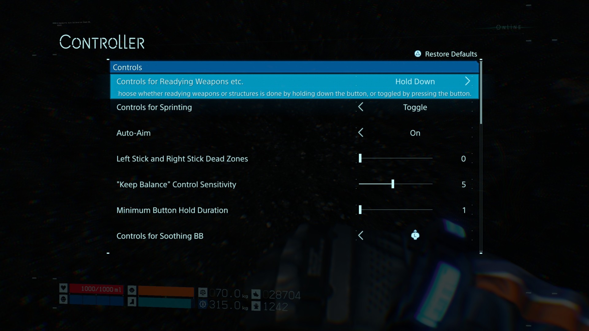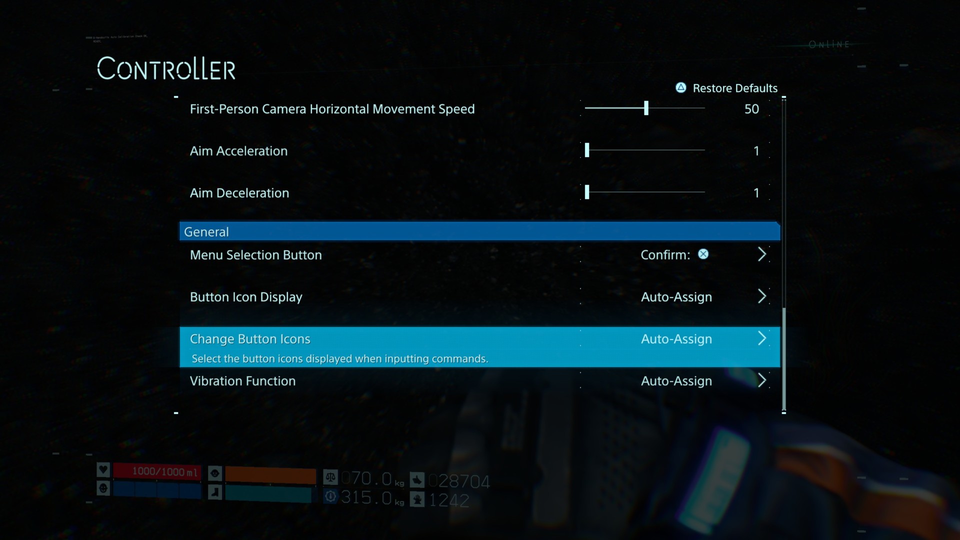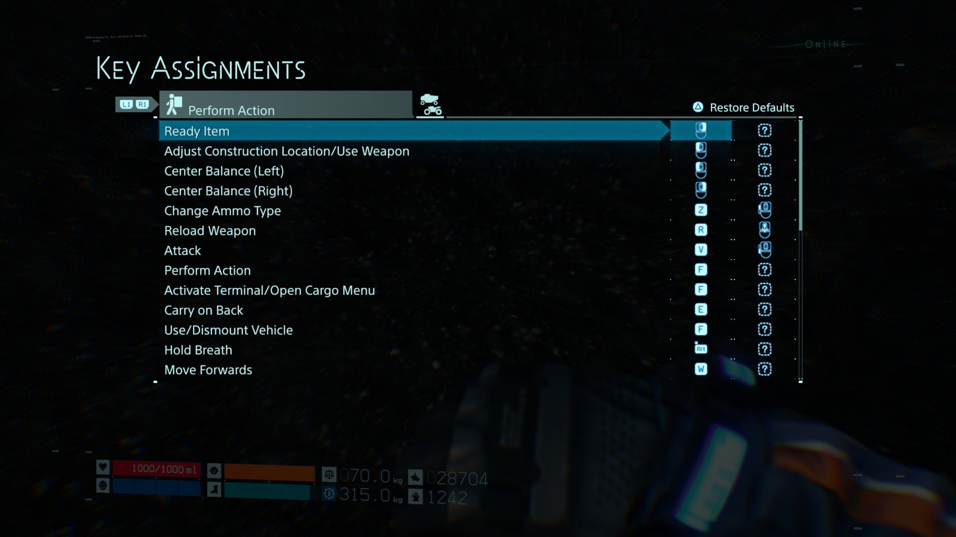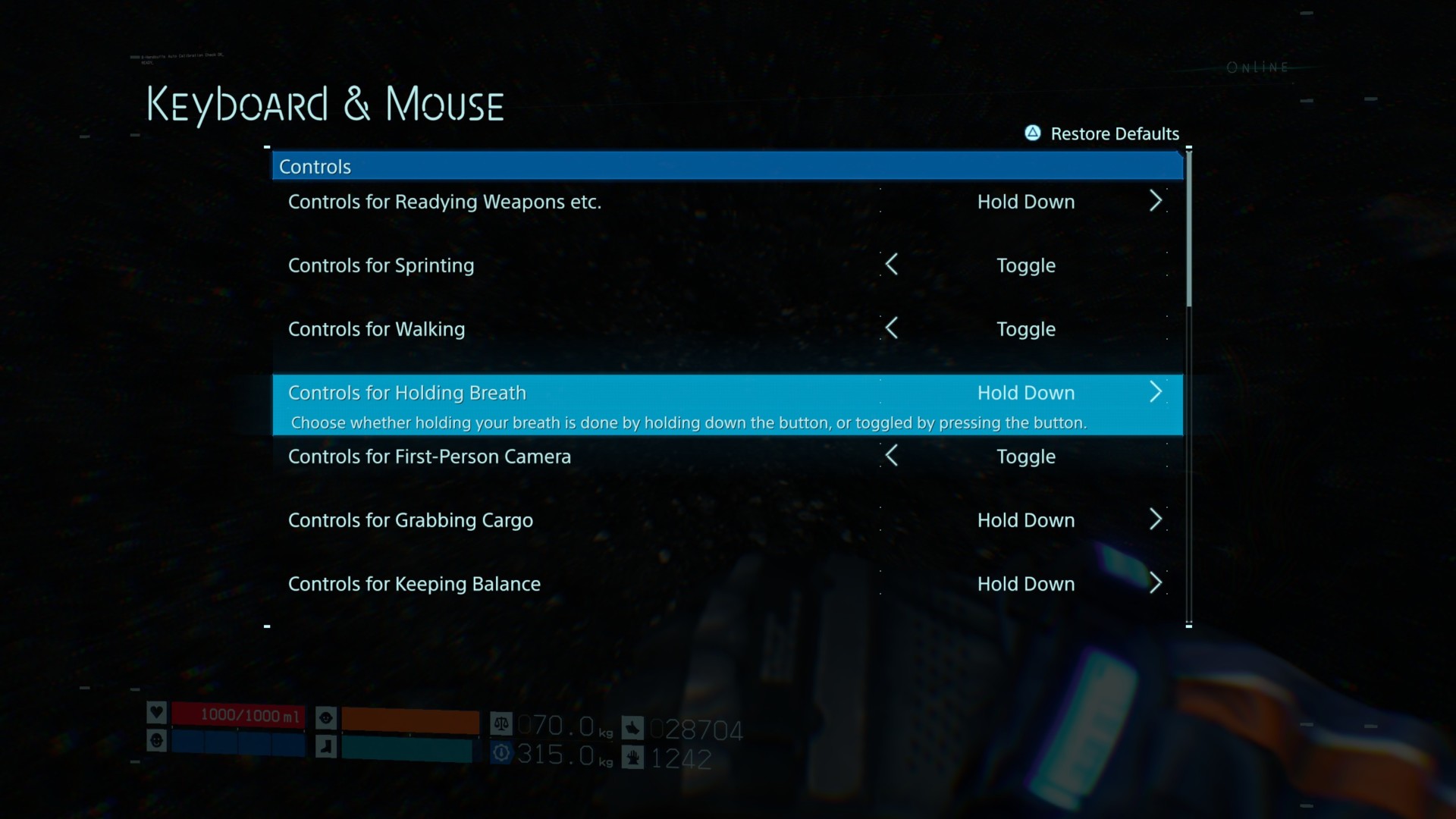 Death Stranding is plenty playable with a mouse and keyboard or gamepad, although I prefer the gamepad for various reasons. Both have a range of options included that are pretty much the same, so I won’t bog this section down too much with screenshots.