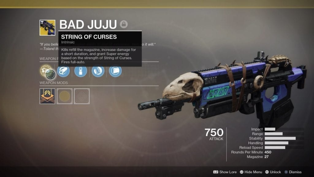 An old exotic from the first Destiny game has returned. It’s the Bad Juju, an exotic pulse rifle that has the String of Curses perk. This allows the Bad Juju to fire at full auto, all while kills reload its magazine automatically, increase its damage, and provide super energy. What’s not to love? In Destiny 2, you can obtain the Bad Juju exotic weapon via a quick and easy quest chain and a short mission. We’ll tell you everything you need to know in this guide.