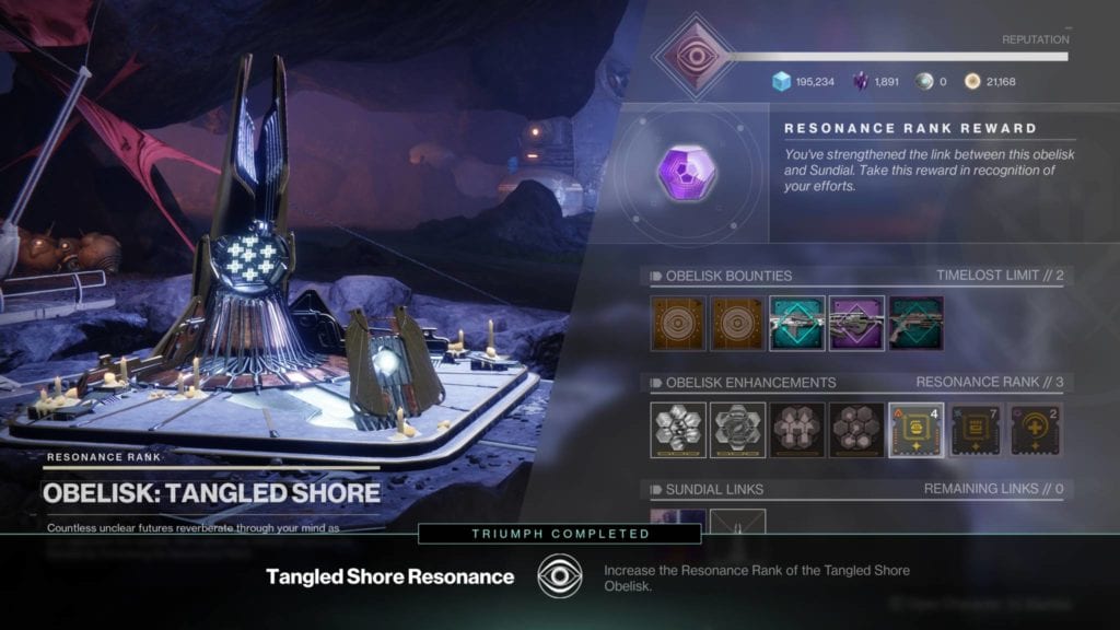 The other main content in Destiny 2: Season of Dawn are the various Obelisks. These are found on four planets. Each has its rewards and perks that you can level-up and grind for. Still, the progression is the same as before:
