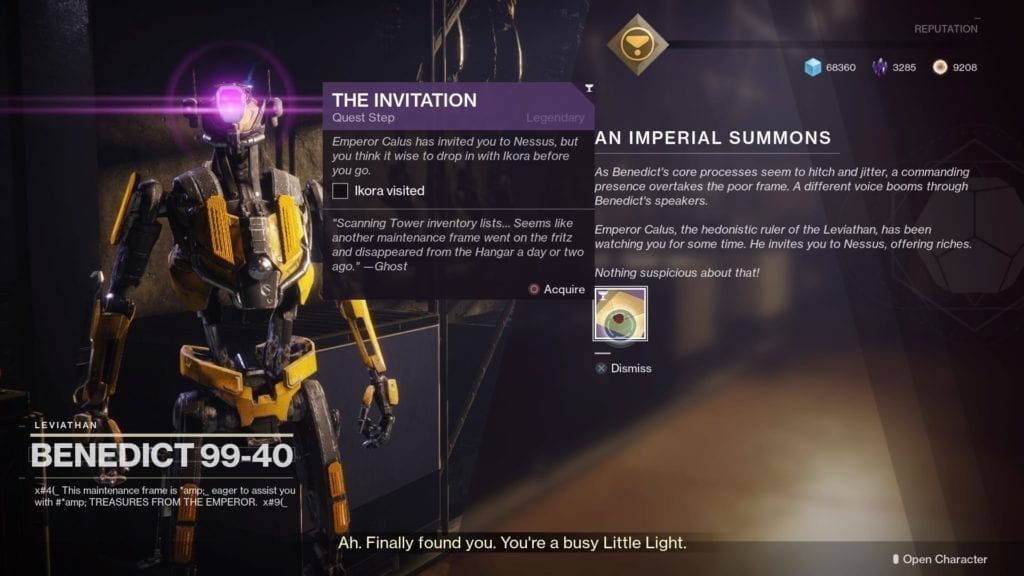 Note 1: The Invitation quest line will unlock The Menagerie activity and Crown of Sorrow raid. Likewise, it also functions much like a catch-up mechanic for Destiny 2 newcomers. Completing it will provide you with 690 PL gear for your Destiny 2 main character and alts.