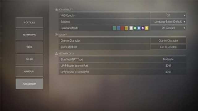 In Destiny 2‘s accessibility settings screen, you can disable your HUD in order to take screenshots akin to “photo mode.” You can also enable subtitles and color blind mode.