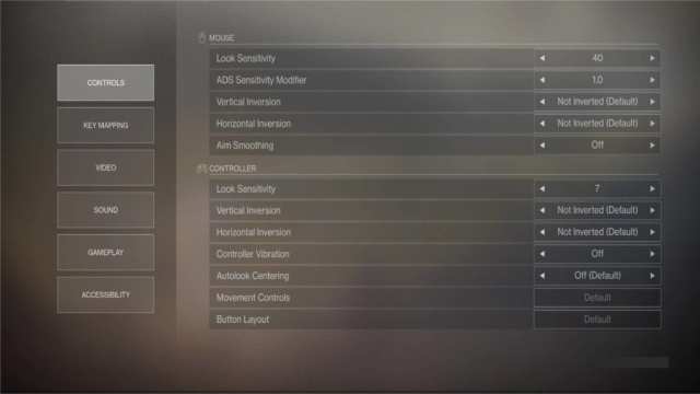 You’ve got your usual control settings here such as inverted camera, sensitivity, and the like: