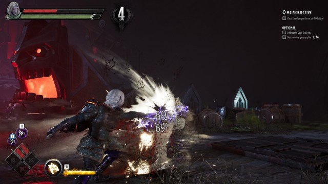 The camera doesn’t make combat any better. It’s glued to your character’s back, which makes attacking awkward. Locking onto foes makes things better, but the camera moves in extra close making it hard to see what’s around you. Since you’ll be fighting multiple enemies at once, the feature is more hindering than helpful. Thankfully, the enemy AI is as braindead as it is useless. When you hit smaller enemies, they get stunlocked — you just wail on them until they die. If you’re playing as Catti-Brie, you often won’t even aggro enemies by sniping them. She can clean out entire areas while the enemies just stand there.