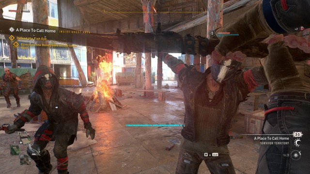 That brings us to combat AI, which needs a few tweaks. Villedor is supposed to be a city filled with camps and outposts. But, there were only a handful of times when I’ve seen human NPCs fighting undead on the streets. Worse, there were instances when I would see Peacekeepers chilling on one rooftop, while Renegade bandits relaxed on the adjacent roof (they only started fighting once I aggroed the bandits). Then, at night, deadlier Infected variants roam the land. But, they turn into chumps if you find raised areas, wooden beams, or scaffoldings that they can’t reach.