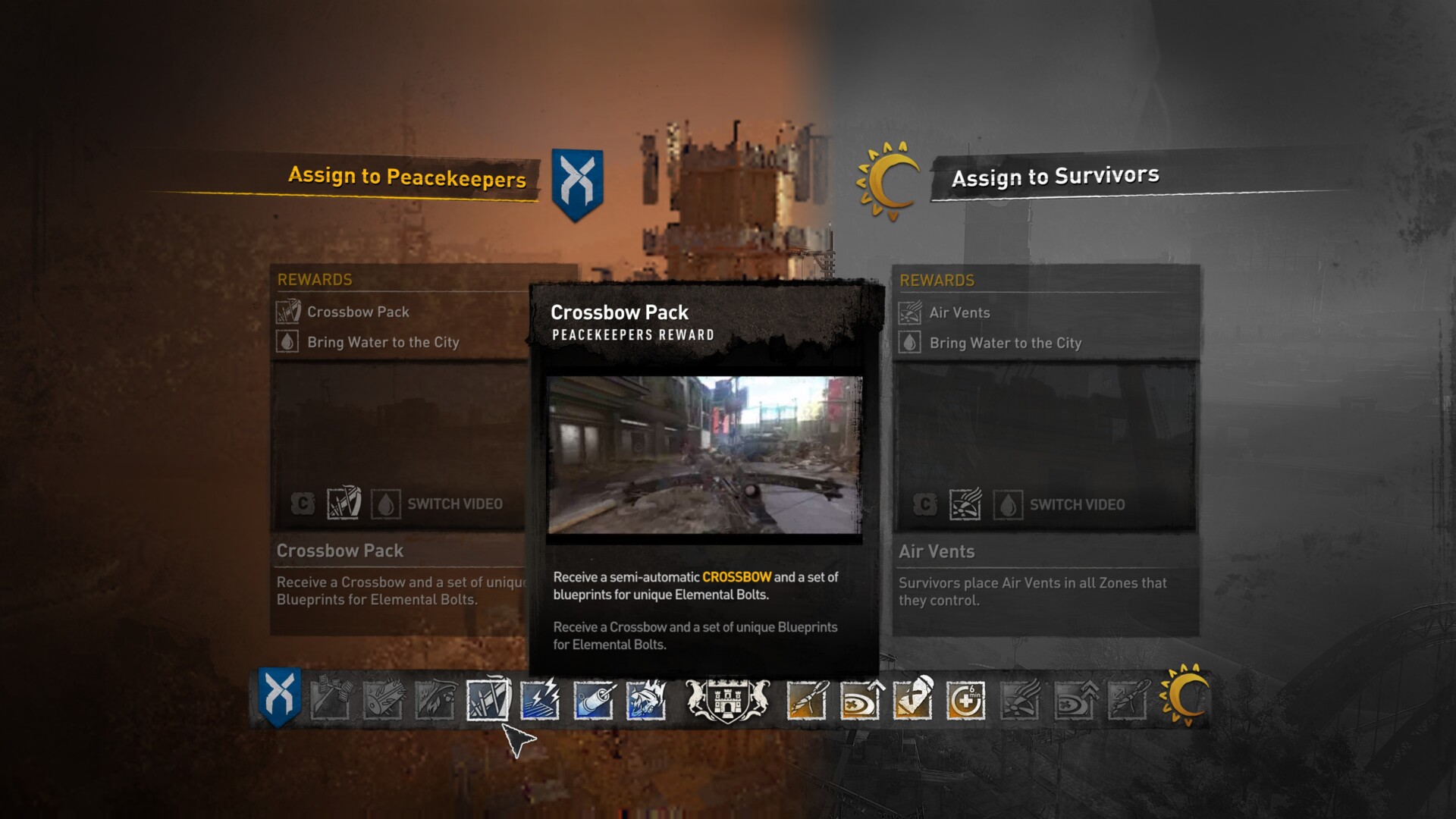 Dying Light 2 Stay Human presents several opportunities where your choices will greatly affect the outcome of quests or the campaign at large. In the case of facilities, these are utility or infrastructure buildings that you can assign to either the Survivors or Peacekeepers. You’ll then receive a reward that adds functions as you explore. For example, the Survivors might add more airbags on the road or two-way ziplines between buildings. Meanwhile, if you choose the Peacekeepers, you’d be able to trigger car traps or Molotov bombs that can decimate hordes.