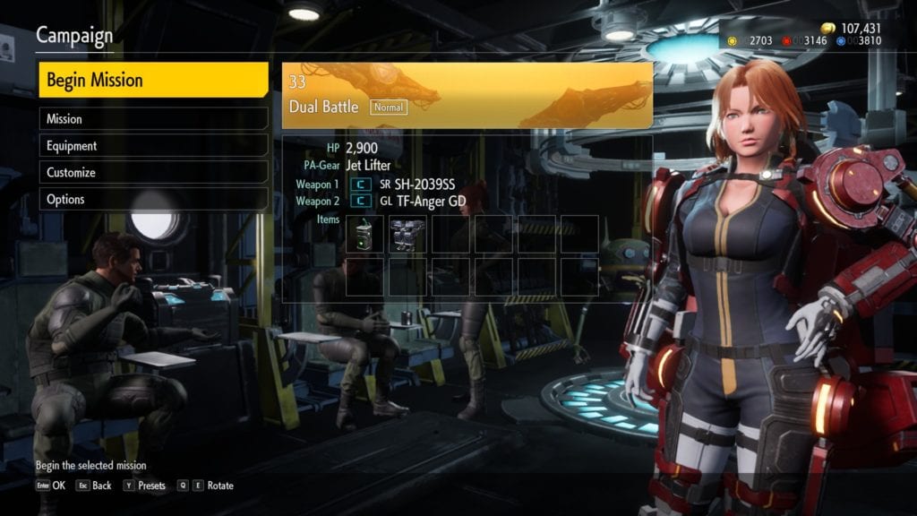 My favorite change, however, is the way health works. In other EDF games, you have to pick up armor drops during missions, which will add to your armor total. This meant that skipping difficulties was a pain, as you’d need to grind for more armor. In Earth Defense Force: Iron Rain, you instead get money for completing missions. You also unlock weapons for purchase the same way, instead of picking them up in the field. You then use your money to buy health upgrades and equipment. I honestly am not fond of having to buy all of the weapons, though. They can get grossly expensive, meaning that it’s risky to try one out and see if you like it.