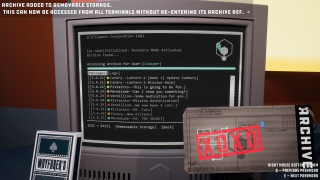 Filament’s environments and competent puzzles are enjoyable in isolation. Story-oriented players will find a lot to love about the Alabaster and Juniper’s lyrical efforts to drown its rooms in emotion. Puzzle fanatics will appreciate the endless deluge of complex hacking and its variety. It’s the melding of the two where Filament struggles to find its footing. Lengthy bouts of disparate puzzle-solving take away from the storytelling, while the Alabaster has only crumbs to offer as rewards for your efforts.
