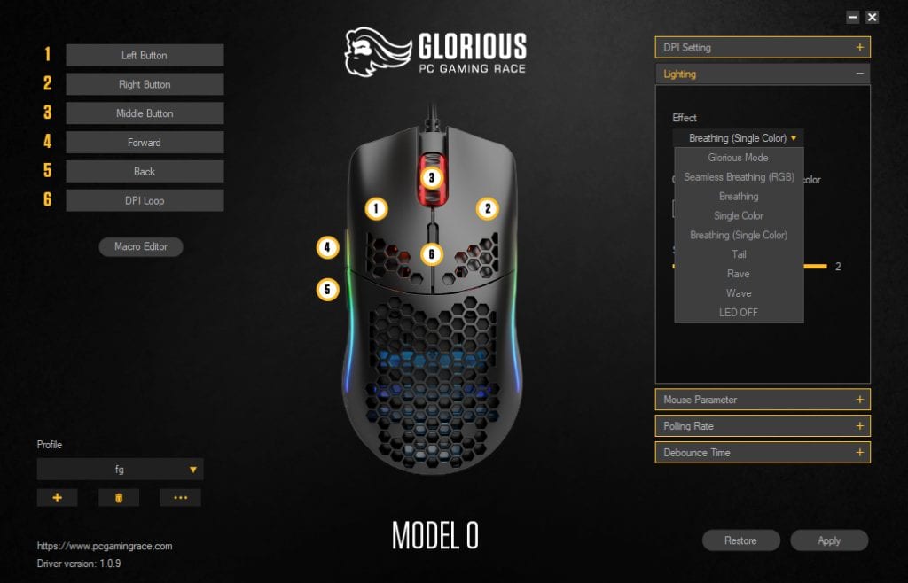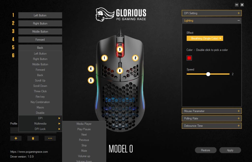 Every aspect of the Model O can be configured using the Glorious Model O software. Although most users will use it simply for customizing DPI rates and changing the lighting, the Model O software is capable of much more.