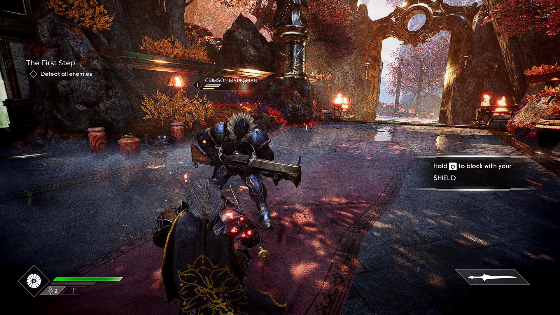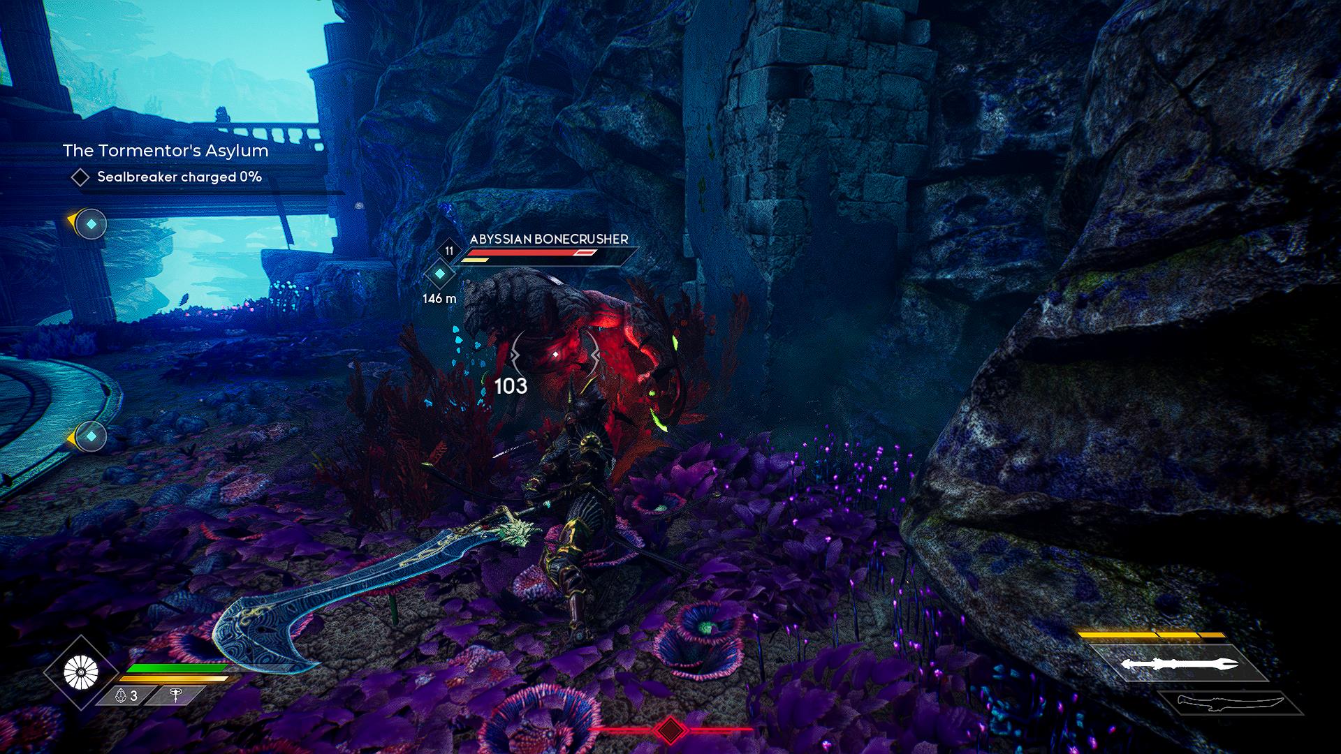 Combat in Godfall is rather on-point, as far as I’m concerned. There are several different weapon types that are useful in their own way: longswords, greatswords, twin blades, hammers, polearms, they’re all here. Orin has a regular and strong attack. Hitting enemies leaves a certain amount of their healthbar that can be healed depending on circumstances, but you can erase this by hitting them with a strong attack. Enemies will take a couple of extra hits if you try and finish them with the regular attack. Utilizing the strong one when you see that they’ve got nothing left but a remainder will cause them to shatter, which is a faster kill.