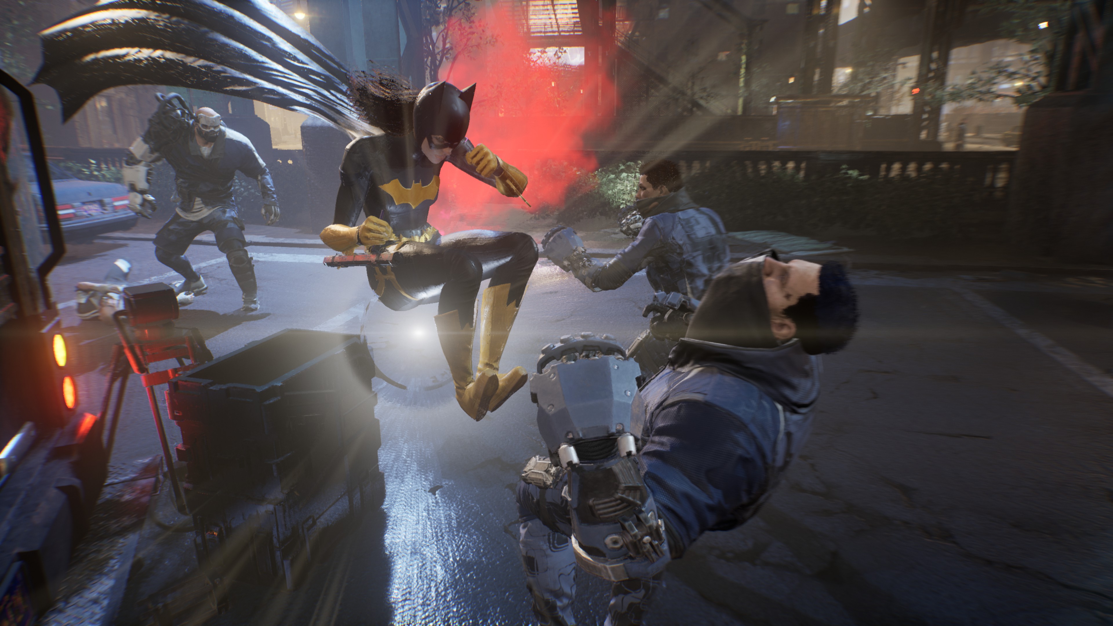 Getting around also doesn’t feel as smooth or intuitive as it did in Arkham Knight. You still use the grapple to pull yourself to buildings. And characters get different navigation abilities, depending. Batgirl has the same glide as Batman, for instance. Only, it doesn’t feel nearly as good as it used to. Awkwardly chaining jumps at the end of grapples into gliding doesn’t feel nearly as seamless or smooth. It looks and feels like a cheap copy.