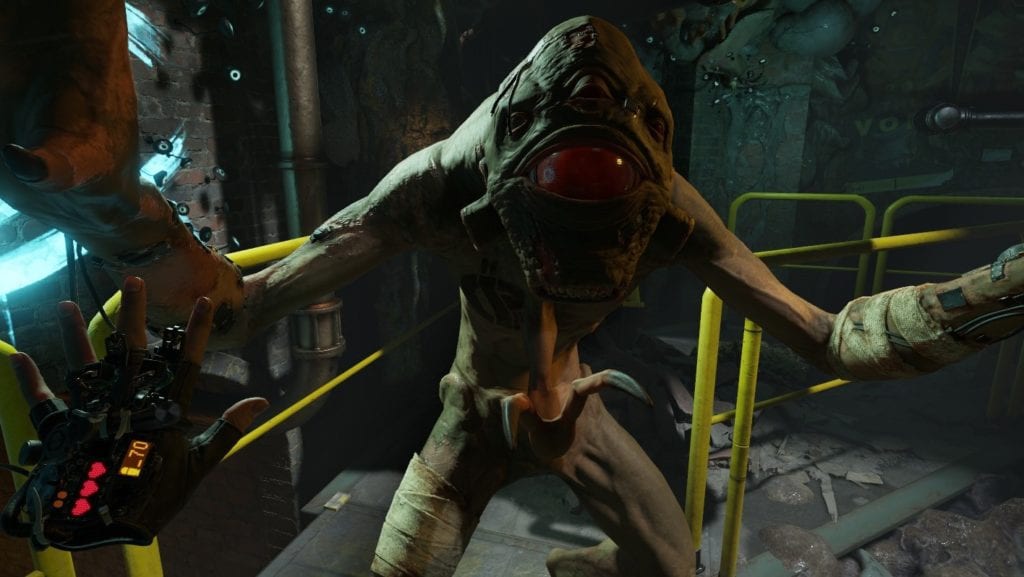 The physicality of weapons is part of the survival horror aspect of the game. Manually reloading your guns, emptying and replacing clips, etc., isn’t easy when enemies are swarming around you. I full-on panicked several times, dropping ammo or firing blind when I was trying to reload while monsters were attempting to eat me and I could hear the telltale beep of a Combine grenade near me somewhere. Still, once you have a fully upgraded weapon and a handle on your gravity gloves, it is very satisfying to get the jump on the enemy.