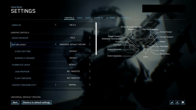 Below, you’ll see the available control settings for Halo 2: Anniversary: