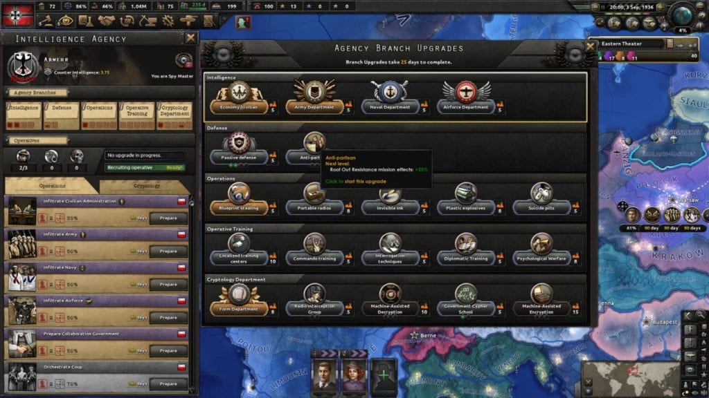 Had Hearts of Iron IV: La Resistance stopped at the actions of operatives on the strategic map, the expansion might be considered half-baked. But, the features of operations and cryptology (part of your Intelligence Agency) add more activities.