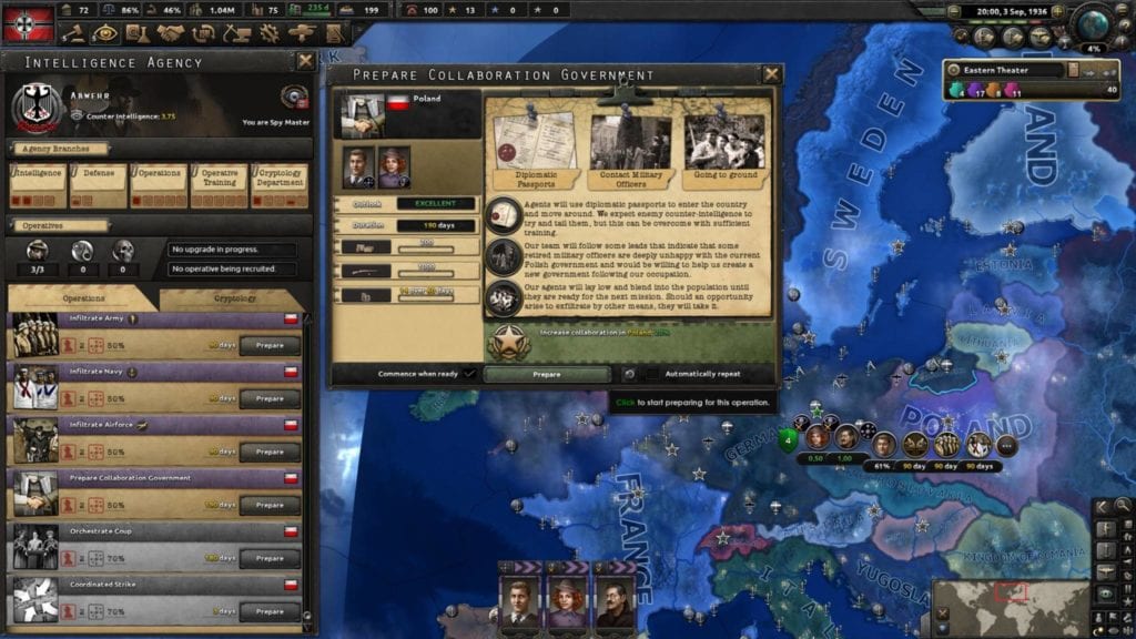 - Once you have enough intel strength, commence with the operation to prepare a collaborationist government and keep repeating it. This operation increases a nation’s compliance once it’s taken over.