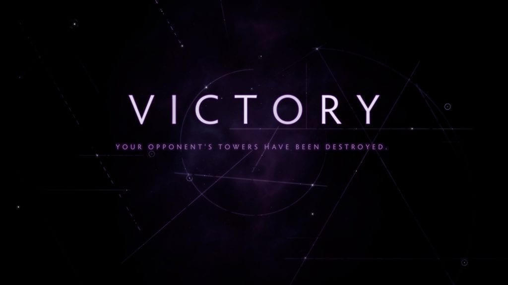 I’m talking victory conditions, here, not how to triumph over your foes. Victory comes when you destroy two of the enemy’s structures, across any lanes. There are actually two ways of doing this.
