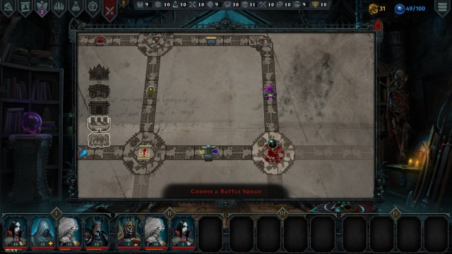 If there’s something that distinguishes the Iratus: Lord of the Dead experience from Darkest Dungeon, it’s momentum. You don’t explore a dungeon. Instead, you have your map of the current level, and you know where the boss is and what types of encounters are on the way. Although you can choose different routes to move your forces through, there’s no backtracking. You’re forced to move inexorably towards the boss room/exit.